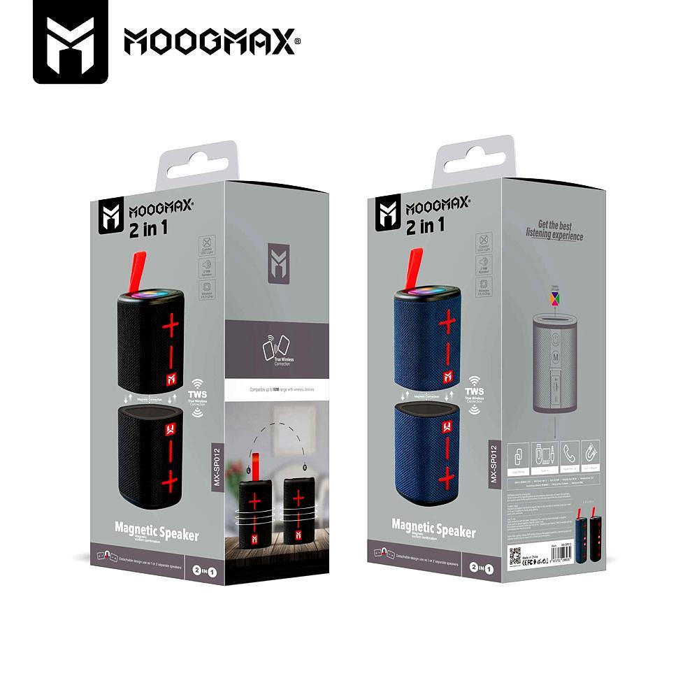 سماعة MOOGMAX اللاسلكية 2 في 1 بتقنية TWS، تتميز بتصميم مغناطيسي فريد يمكن فصلها إلى سماعتين بصوت ستيريو مزدوج، مع إضاءة LED ملونة واتصال بلوتوث ثابت يصل إلى 10 أمتار، وتوافق مع جميع الأجهزة الذكية